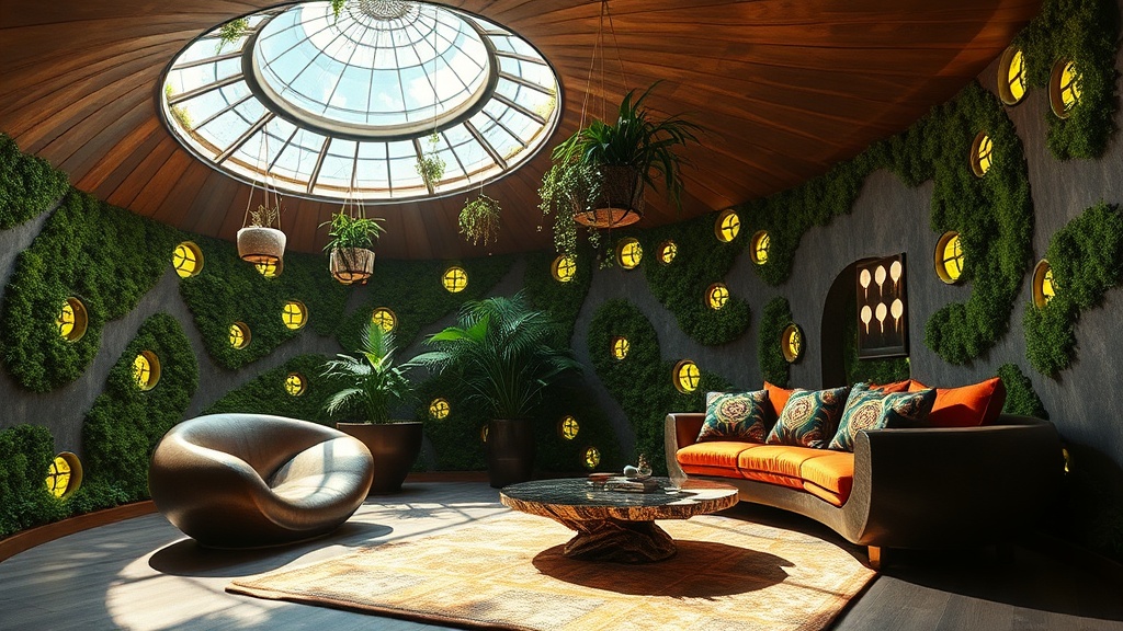 Afrofuturism Biophilic merges futuristic technological elements with natural forms, textures, and materials inspired by African landscapes and cultures. It's a celebration of heritage, nature, and forward-thinking innovation.