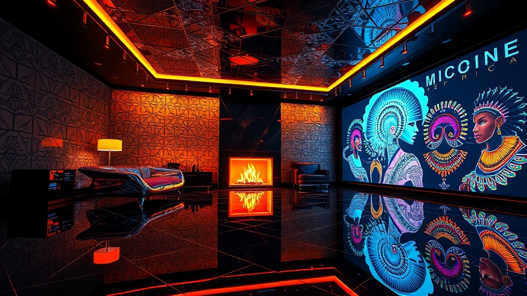 - Mix High-Tech with Organic Materials: Combine elements like LED lighting and holographic displays with natural materials like wood, leather, and stone.