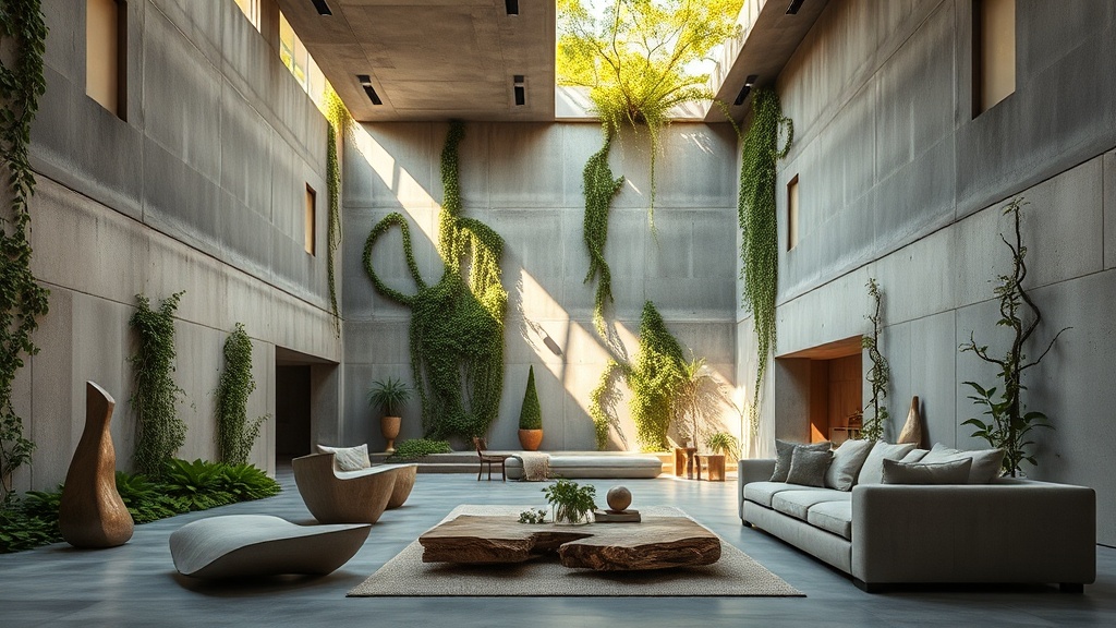 - Incorporate Biomorphic Furniture: Choose furniture with organic curves and flowing lines to soften the harshness of the concrete.