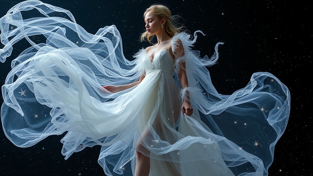 Celestial Core embodies the mystery and wonder of the universe through fashion. It prioritizes flowing fabrics, shimmering textures, and cosmic-inspired details to create a look that is both enchanting and otherworldly.