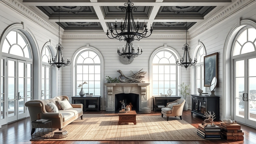 Coastal Gothic fuses the light, breezy atmosphere of coastal design with the somber, elegant drama of Gothic style. It's an unexpected pairing that results in spaces that are both calming and captivating, offering a unique twist on traditional coastal interiors.