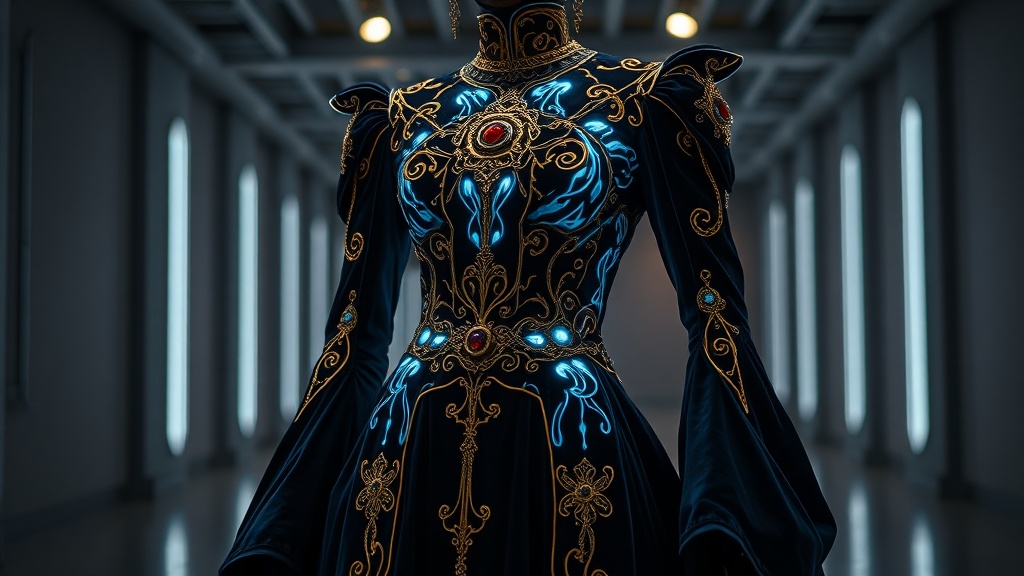- Mix Rich and Futuristic Fabrics: Combine velvet, brocade, or silk with mesh, PVC, or carbon fiber.