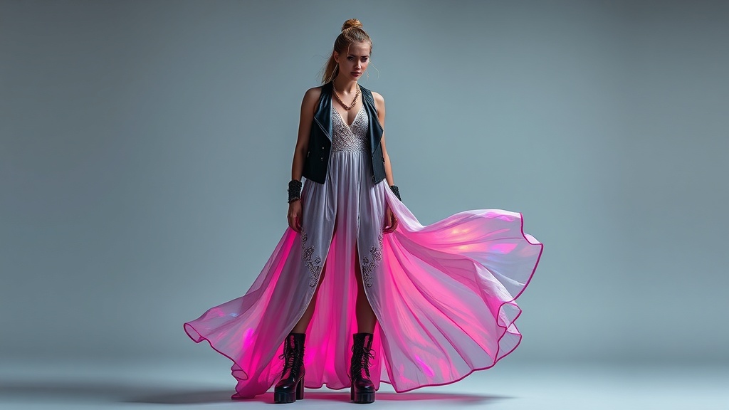 - Textural Contrast: Combine natural fabrics like linen and cotton with futuristic synthetics like PVC or neoprene.
