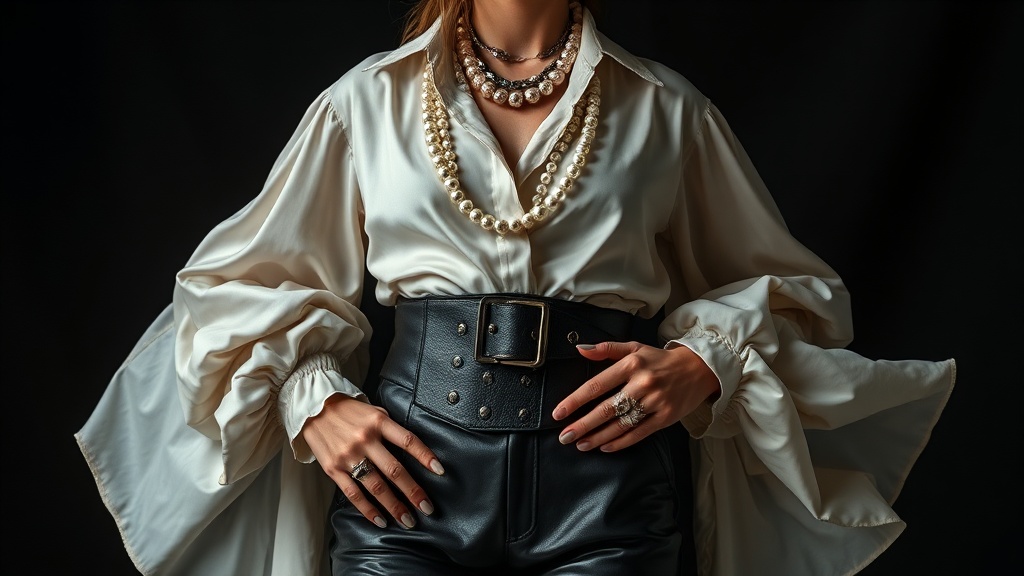 - Add High-Waisted Bottoms: Opt for wide-legged trousers or a long, flowing skirt in a dark color. Consider adding a wide belt with a large buckle for a pirate-inspired touch.
