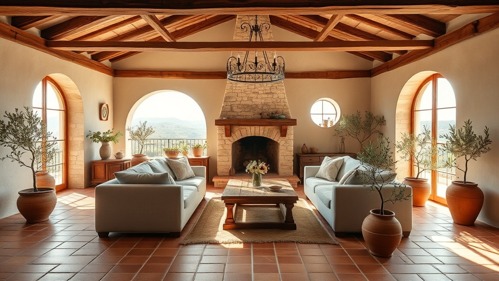 - Natural Materials: Stone, wood, terracotta tiles, linen, and wrought iron are essential.