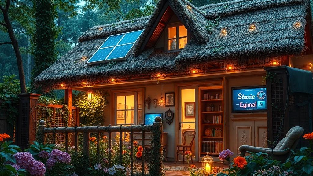 - Cozy Comfort with Futuristic Touches: Blending of comfortable, handmade textiles and vintage furniture with state-of-the-art gadgets and digital displays.