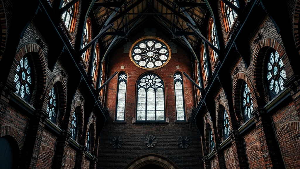 - Gothic Architecture: Pointed arches, ribbed vaults, and stained glass (modern interpretations).